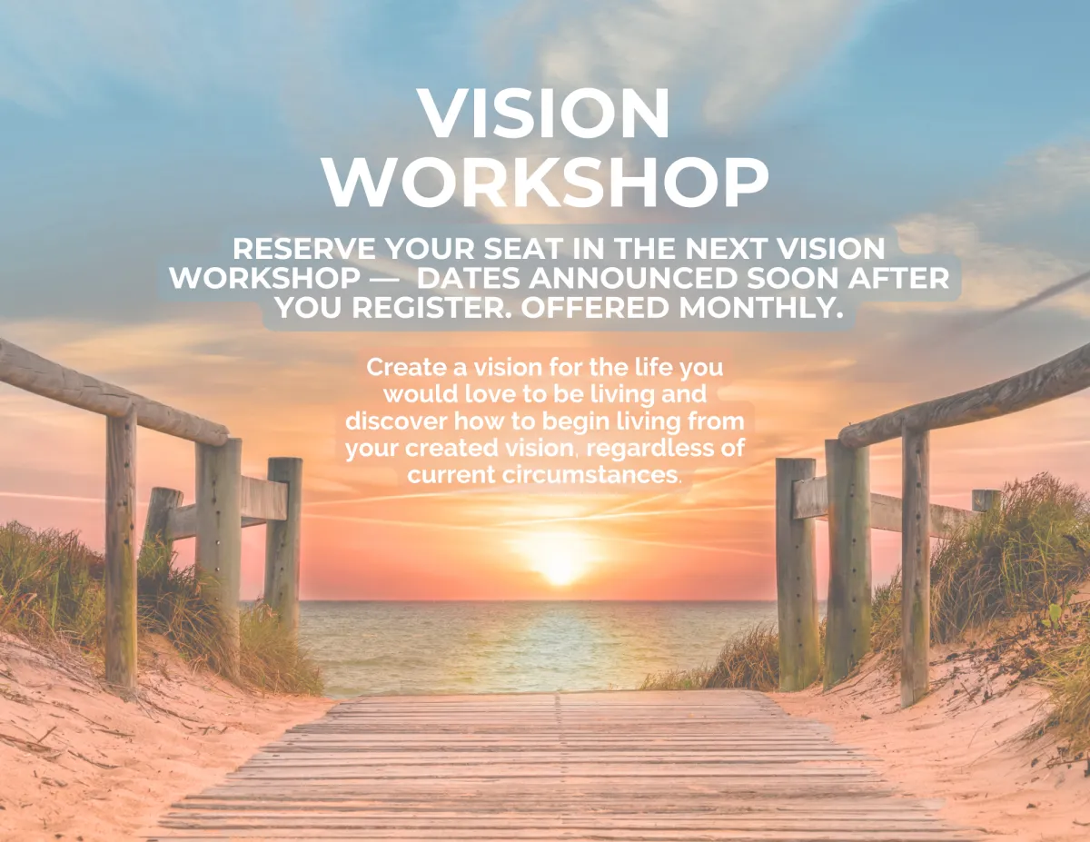 I invite you to join me for this amazing Vision Workshop and discover how to begin living from your created vision, regardless of current circumstances.